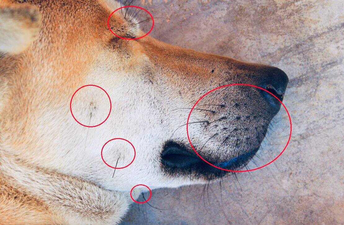 Какие же нормальные особенности собак и кошек могут маскироваться под кожное заболевание и на что обратить внимание, чтобы не упустить настоящую проблему? 📍Часть 2 Одним из вариантов анатомической нормы, «маскирующейся» под патологию,являются места расположения вибрисс (крупные чувствительные волоски, расположенные на теле животного). Они в несколько раз толще и длиннее волос основного шерстного покрова и помогают животному ориентироваться в пространстве, осязать, улавливать воздушные потоки и т.д. В основании вибрисс расположены чувствительные (тилотриховые)подушечки,богатые нервными окончаниями. Эти подушечки похожи на бугорки под кожей, и иногда они принимаются владельцами животных за кожное новообразование, особенно если на момент осмотра сам вибрисс выпал (в процессе обычного цикла роста волоса)или был, например, сострижен при груминге. 🐈🐕 У кошек и собак вибриссы располагаются в первую очередь, конечно, на голове, но не только в формате усов и бровей. Чувствительные волоски