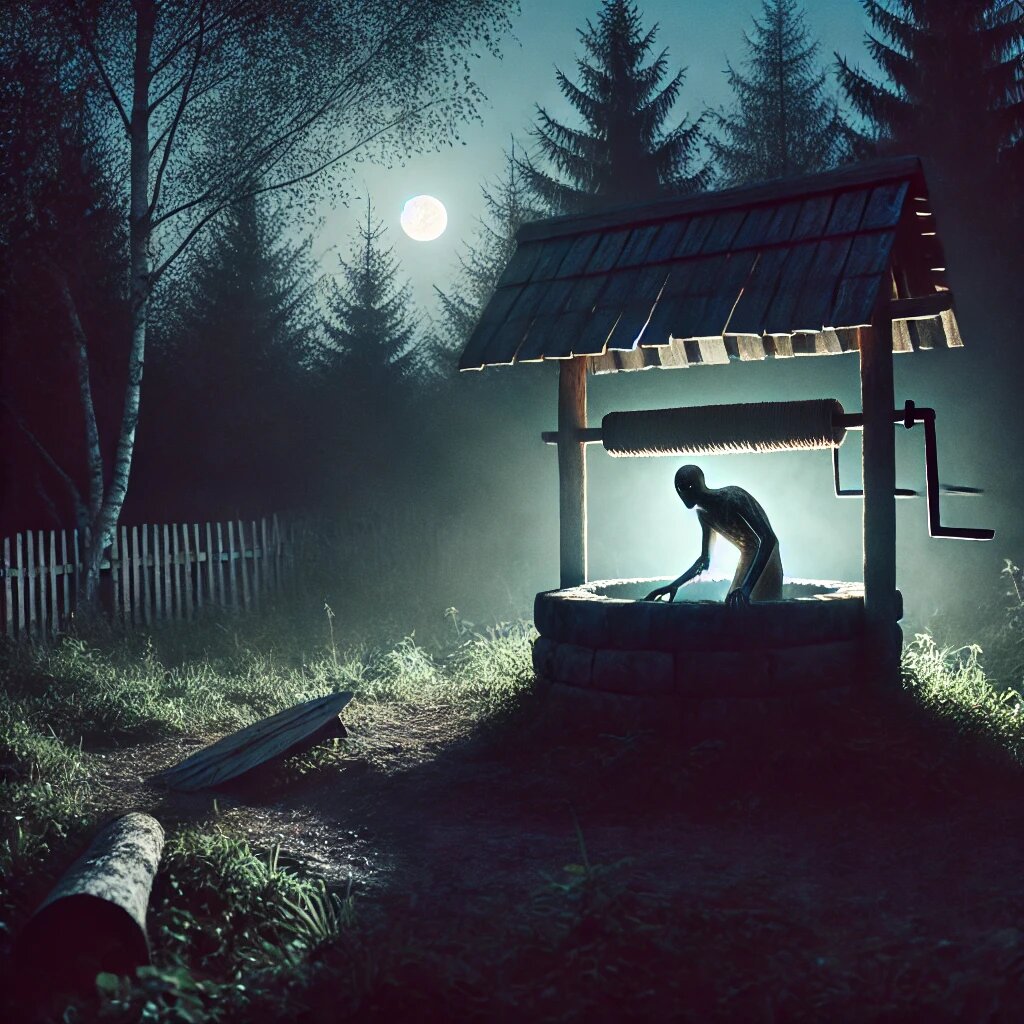 Когда мне было 12 лет, мы с родителями жили в небольшой деревне в Тульской области. Дом, который достался нам от бабушки, стоял на краю леса. А перед домом был старый колодец, закрытый деревянной крышкой, которую отец всегда на всякий случай прижимал тяжелым камнем. Этим летом мы проводили много времени на улице — играли, собирали ягоды в лесу, даже устраивали ночёвки на веранде. Однажды поздно вечером, когда я уже лежал в своей комнате, я услышал странный звук. Это был глухой стук, будто кто-то долбил по дереву. Я выглянул в окно. Лунный свет освещал наш двор, и мне показалось, что крышка колодца слегка приподнята. Камня на ней не было. Сначала я решил, что это ветер или соседская собака, но тут крышка колодца резко открылась. Изнутри показалась бледная, мокрая рука, а потом… что-то вроде человеческой головы. Оно вылезло полностью и замерло, как будто прислушиваясь. Высокая, худая фигура в мокрой одежде повернула голову в мою сторону. Я замер, боясь даже дышать. Существо начало двигат