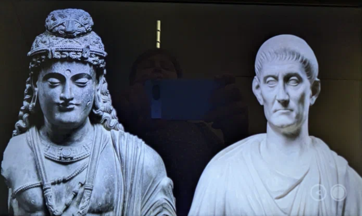 Справа - классическая римская статуя, а вот слева - произведение искусства их государства Гандхара в Индии.
