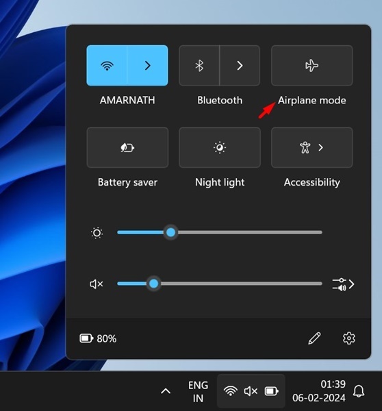 Как и в Windows 10, в Windows 11 также есть режим «В самолете», который отключает все беспроводные соединения на вашем ПК. Поэтому, если вы не видите ни одной сети WiFi, убедитесь, что режим «В самолете» отключен.