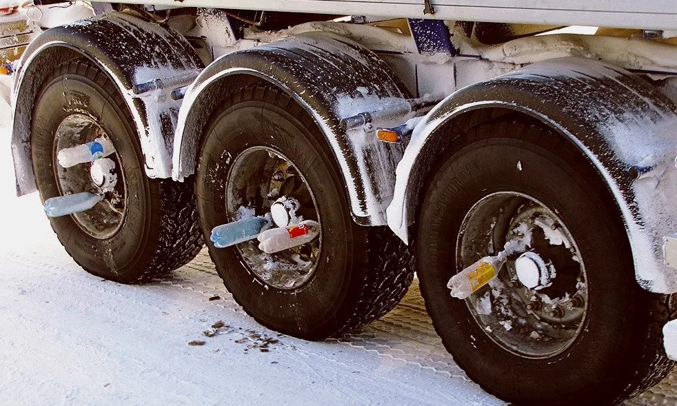 Водителям разъяснили, зачем на самом деле дальнобойщики крепят бутылки к колесам авто Загружено с ошибкой.