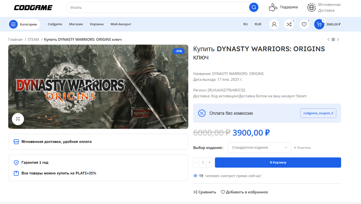 Статья актуальна на 17 января 2025 года — РЕЛИЗ ИГРЫ Привет, друзья! Сегодня знаменательный день — выход игры DYNASTY WARRIORS: ORIGINS по всему миру. Игра давно заслужила статус бестселлера. В этой статье я расскажу, как приобрести её в России по выгодной цене в день релиза. Как это обычно бывает, на момент выхода цены на игру взлетают, но есть магазины, где можно купить её по приемлемой стоимости. Инструкция по покупке ключа для ПК (STEAM): Для тех, кто не знаком с игрой: