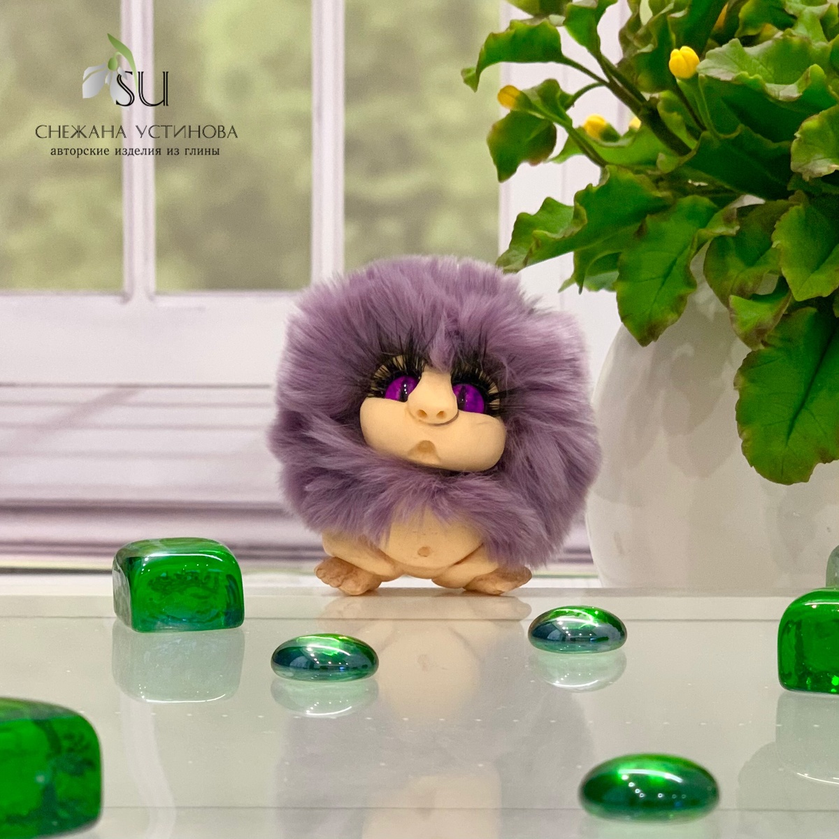 Мое создание Домовенка Стиляги началось с мечты: я хотела сделать что-то необычное, что-то, что будет радовать глаз и поднимать настроение. Сначала я долго думала над его образом. Это должен был быть не просто домовенок, а настоящий стиляга, который принесет в дом не только уют, но и капельку хулиганства. Я представляла, как он будет стоять на полке, всем своим видом напоминая, что жизнь — это не только серьезные дела, но и веселье. Работа с холодным фарфором — это всегда магия. Каждый этап создает что-то уникальное. Я лепила его тело, стараясь придать ему мягкие, округлые формы, которые бы добавляли ему добродушия. Голова получилась чуть больше, чем нужно — так захотелось, чтобы он выглядел еще более забавным. Когда дело дошло до лица, я долго экспериментировала с выражением. В итоге он получился таким, словно только что придумал какую-то шалость, но еще не решил, стоит ли ее воплощать в жизнь. Волосы из кроличьего меха стали отдельным приключением. Я хотела, чтобы они были яркими, но