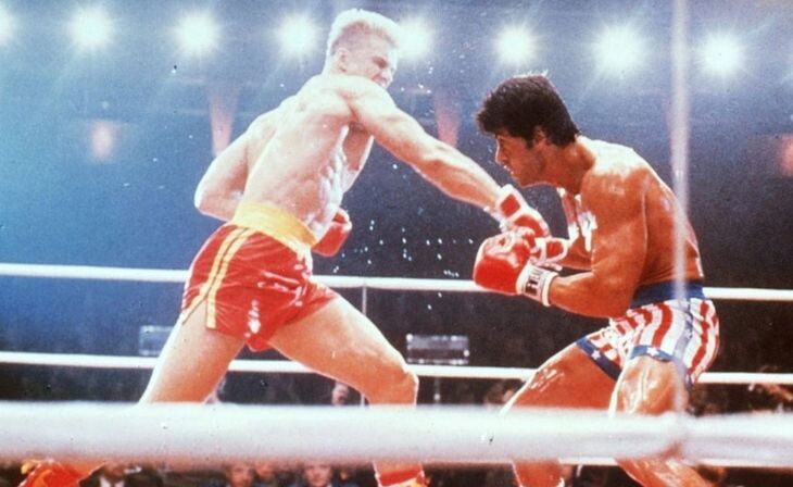 Сам бой – это 15 раундов с привычной для таких фильмов схемой. Сначала у Рокки не получается, но потом вспыхивает перелом: монструозный Драго не справляется с техничным Рокки и даже теряет симпатии в московском зале.