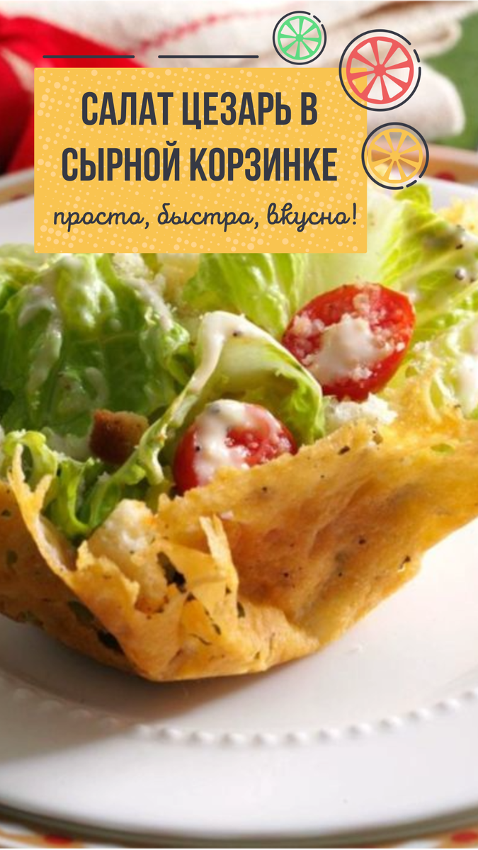 САЛАТ ЦЕЗАРЬ В СЫРНОЙ КОРЗИНКЕ – необычная подача любимого блюда 💥🔥