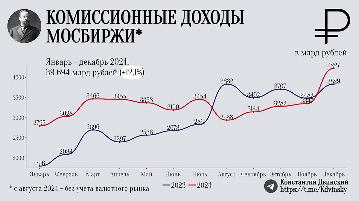 В декабре комиссионные доходы Мосбиржи прилично выросли. Только по опубликованным операционным результатам они составили около 4,2 млрд рублей, что на 10,4% больше декабря 2023 года. Притом, что тогда еще в полной мере работал валютный рынок. Такое стало возможным благодаря последней неделе торгов, когда из-за решения ЦБ оставить ключевую ставку в 21% произошло новогоднее ралли как рынке акций, так и на рынке облигаций. К слову, в начале января высокие объемы торгов также имеют место. Вкупе с сохранением высоких процентных ставок (процентные доходы) Мосбиржа по итогам 2025 года может выйти на рекордные финансовые результаты. Впрочем, это было бы интересно, но компания стоит дороговато – 471 млрд рублей на настоящий момент. Притом, что на рынке сохраняется достаточное количество дешевых и перепроданных историй. Не знаю, почему, но Мосбиржа всегда стоила либо справедливо, либо слишком дорого. К тому же, такие высокие процентные доходы – явно не долгосрочная вещь, закладывать которую на 2