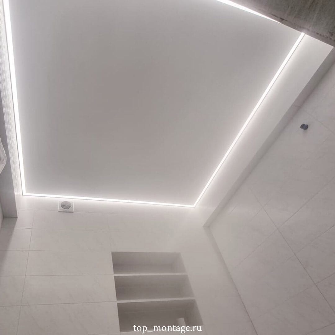 - Парящий натяжной потолок отлично подходит для зала, коридора или балкона, добавляя современный вид и свет в любое пространство.