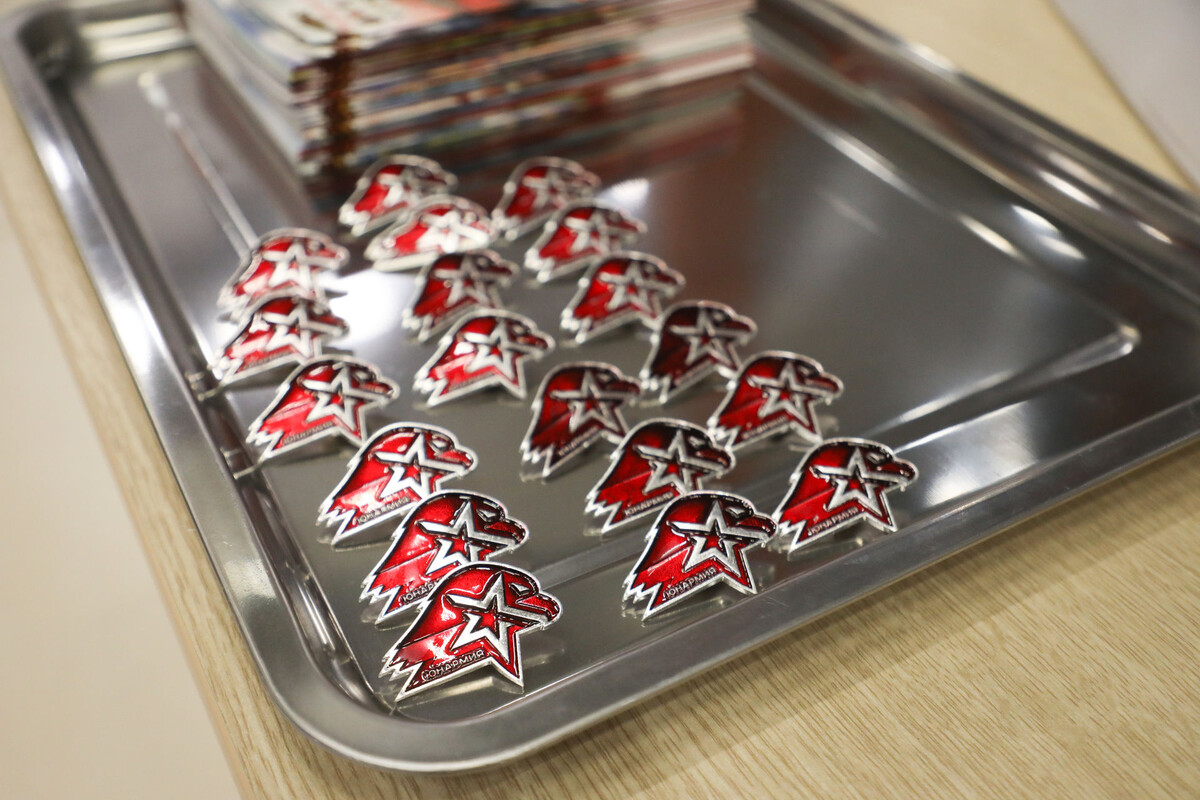 Затем прошла церемония посвящения в кадеты. Воспитанники авиационных кадетских классов произнесли слова клятвы кадета, а затем им были вручены форменные погоны. Будущие юнармейцы также принесли клятву, почетные гости вручили им значки всероссийского детско-юношеского военно-патриотического общественного движения «ЮНАРМИЯ».