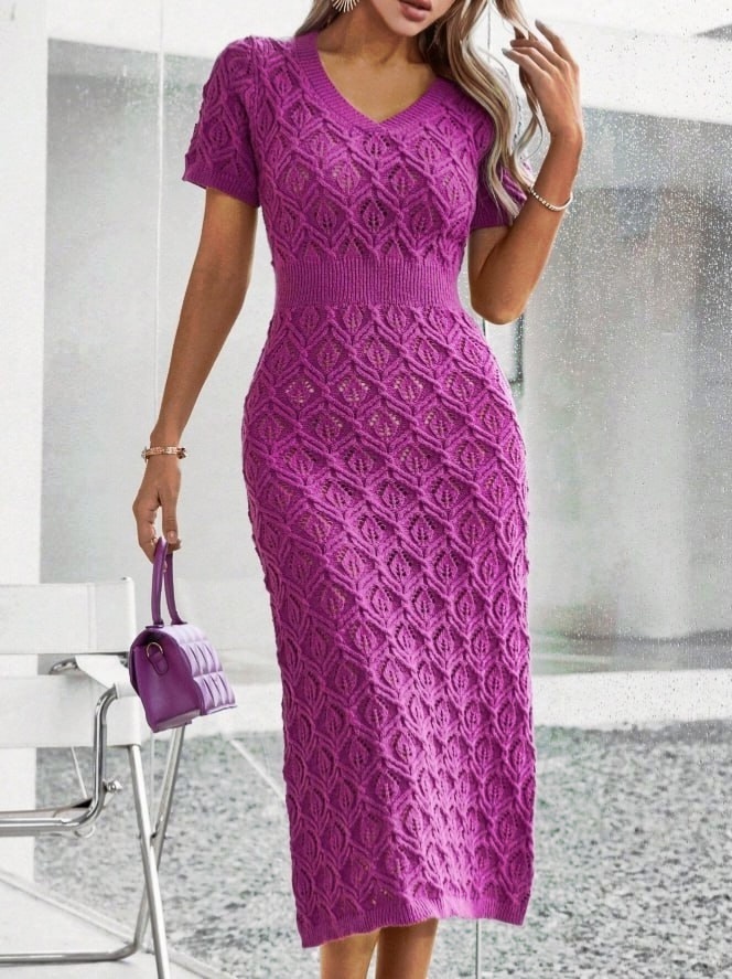 С таким ажуром можно не переживать за прозрачность полотна — узор достаточно плотный, а ажурных накидов на такие крупные ромбы получается не так уж и много. Вполне можно обойтись без подкладки. Такое платье отлично подойдёт для весны и на прохладные летние вечера.
