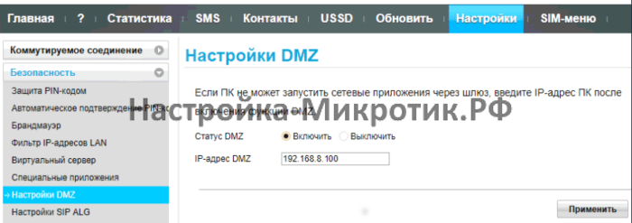 Часто встречается реализация двойного и тройного NAT’а, когда оборудование получает серый IP адрес от вышестоящего маршрутизатора. Серым IP является не маршрутизируемый адрес из нескольких пулов: На этих адресах не работает DDNS и нельзя сделать публикацию NAT для сервисов. Если вам от оператора прилетает серый IP, в этом нет никакой проблемы, за исключением невозможности публиковать сервисы наружу и использовать DDNS. Всегда выдается серый динамический IP, в исключительных случаях можно заказать услугу белый IP (подключается по запросу или покупается обходными путями) или подключить IPv6 Для избегания двойного NAT настраивается DMZ на IP адрес полученный MikroTik от модема. В большинстве случаев это 192.168.8.100 Часто встречаемая схема — LTE kit принимает и NAT’ит интернет в серую сеть, затем стоит второй роутер, который NAT’ит серую сеть в другую серую сеть. По этому нужно приземлять IP адрес от оператора с помощью Passthrough LTE, тем самым IP адрес с антенны с помощью Vlan можно п