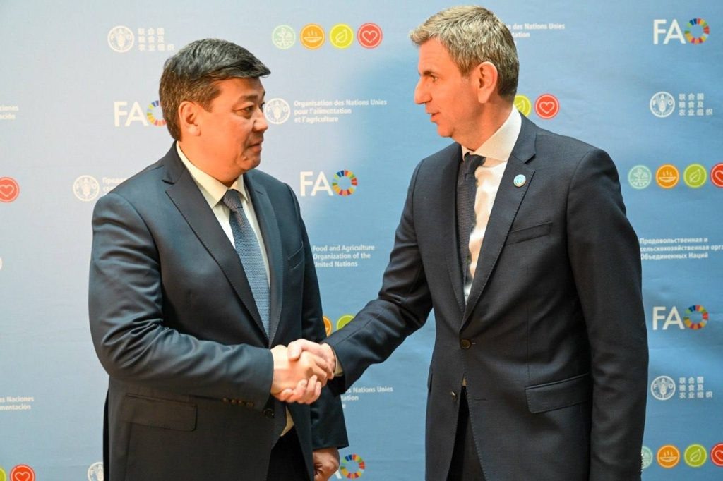Кыргызстандын Министрлер Кабинетинин Төрагасынын орун басары Бакыт Төрөбаев Венгрияда ФАОнун өкүлү Виорел Гучу менен жолугуп, дыйкандарды колдоо жана илимди өнүктүрүү үчүн азык-түлүк коопсуздугу, айыл чарбасындагы инновациялар жана сууну туруктуу башкаруу маселелерин талкуулады. 🌾 Бакыт Төрөбаевдин Венгрияга болгон сапары Кыргызстандын айыл чарбасы үчүн жаңы горизонтторду ачты. 🤝 ФАО өкүлү менен жолугушууда негизги темалар, анын ичинде азык-түлүк коопсуздугу жана айыл чарба тармагындагы инновациялар талкууланды. 💧 Ошондой эле өлкөнүн айыл чарбасы үчүн маанилүү болгон суу ресурстарын туруктуу башкарууга көңүл бурулду. 👩🌾 Дыйкандарды колдоо жана айыл жамааттарынын натыйжалуулугун жогорулатуу үчүн көндүмдөрдү өнүктүрүү боюнча чаралар талкууланды. 📈 Кыргызстан менен ФАОнун өнөктөштүгүн чыңдоо айыл чарба тармагында мурда жетишилген макулдашууларды ишке ашырууну күчөтөт. 🌍 Бул кадамдар айыл чарба тармагындагы абалды жакшыртууга жана Кыргызстандын айыл чарбасынын туруктуу өнүгүүсүнө ж