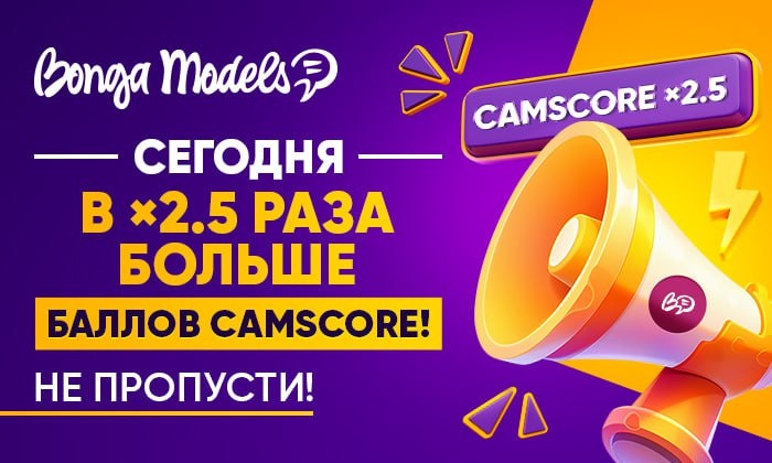 ❤️Будьте онлайн на BongaCams сегодня 17.01.25 с 19:00 до 01:00 по МСК. Получайте в ×2.5 РАЗА БОЛЬШЕ баллов CamScore! 💕При этом на скорость снижения рейтинга акция никак не влияет. Ваш суммарный показатель CamScore будет снижаться, как обычно, а повышаться значительно быстрее! ➡️Не упустите возможность сделать свою комнату еще более заметной – будьте онлайн в указанные часы и увеличивайте свой рейтинг! #BongaCams