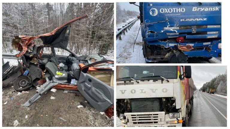 Маленькая легковушка автолюбительницы врезалась на обледенелой трассе М-3 “Украина” в Навлинском районе Брянщины поочередно в фуру с полуприцепом, придорожное ограждение по правой стороне, затем на встречке – в другой грузовик с прицепом и еще одно ограждение, уже по левой стороне шоссе. Женщина родилась в рубашке. Напомним, первыми на помощь попавшей в страшную автоаварию автолюбительнице (возможно, были другие раненые, но о них ГИБДД не сообщило) пришли рабочие Дорожной службы. Они не успели посыпать песко-соляной смесью покрытую гололёдом вблизи поворота на поселок Синезёрки Навлинского района проезжую часть трассы М-3 “Украина”. И легковушка 51-летней дамы-водителя марки Chevrolet Aveo во время обгона на скользкой дороге потеряла сцепку с асфальтом. Через пару мгновений она врезалась в попутно ехавший грузовик Volvo FH12 с полуприцепом, которым управлял 38-летний мужчина. После этого женщина влетела в дорожное ограждение, находившееся справа по ходу движения, отлетела от него на вс
