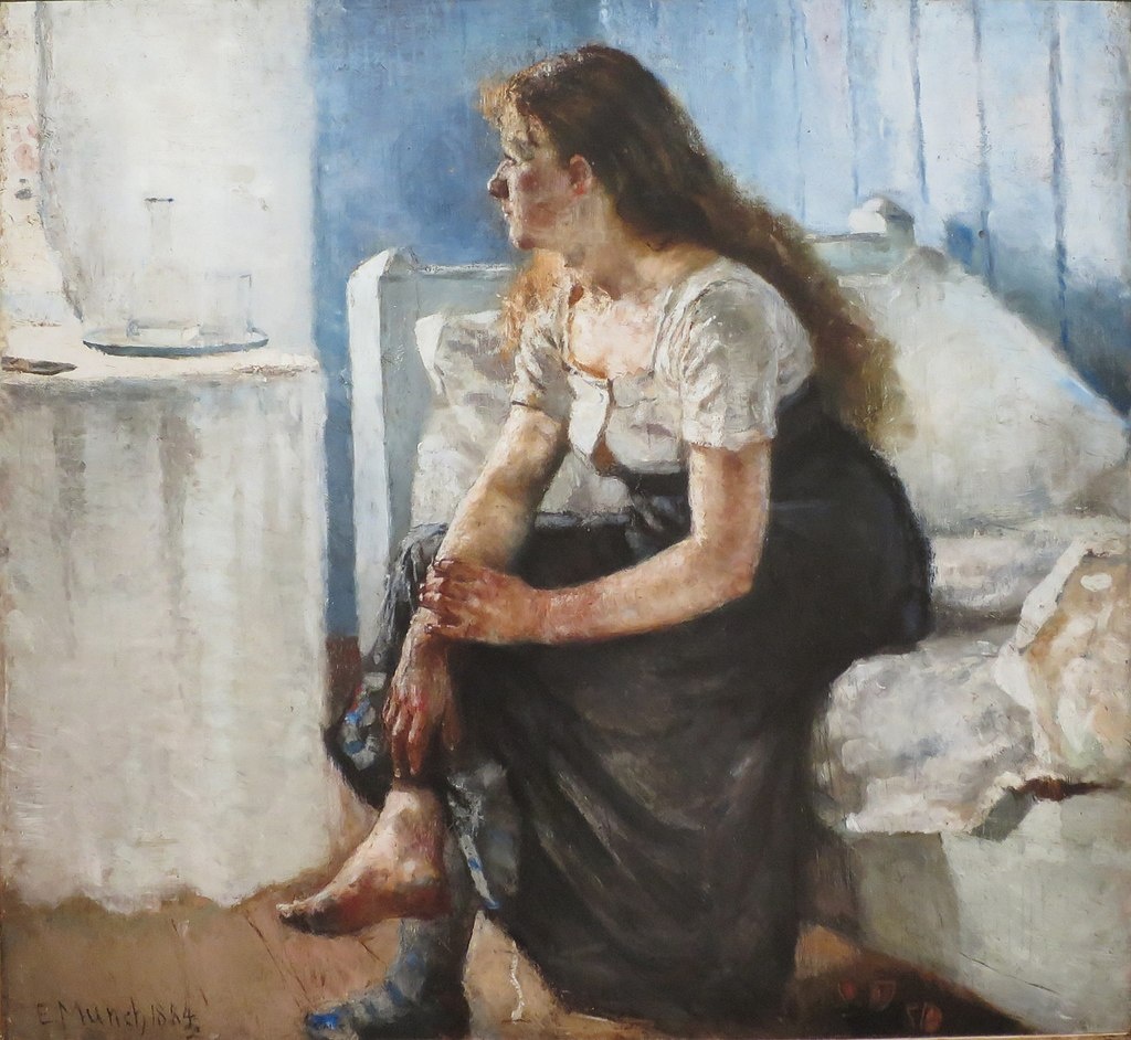 Картина была написана в норвежском городе Модум, где дальний родственник Эдварда Мунка (1863–1944) художник Фриц Таулов (1847–1906) проводил "академию под открытым небом". Таулов был в то время одним из самых влиятельных художников Норвегии, а также самым хорошо информированным о французской художественной школе. На картине «Утро» изображена сидящая деревенская девушка, на которую падает свет, попадающий в комнату через окно слева. И Мунк использует этот свет скорее для того, чтобы растворить формы, чем подчеркнуть их. Картина, впервые выставленная на Осенней выставке 1884 года, получила крайне негативный отзыв. Исполнение и мотив были признаны безвкусными. Но в 1889 году норвежское жюри отобрало картину для участия во Всемирной выставке в Париже. Хотя сам Мунк хотел, чтобы на выставке была представлена какая-нибудь из его более личных работ. Картина находится в Художественном музее КОДЕ в Бергене.