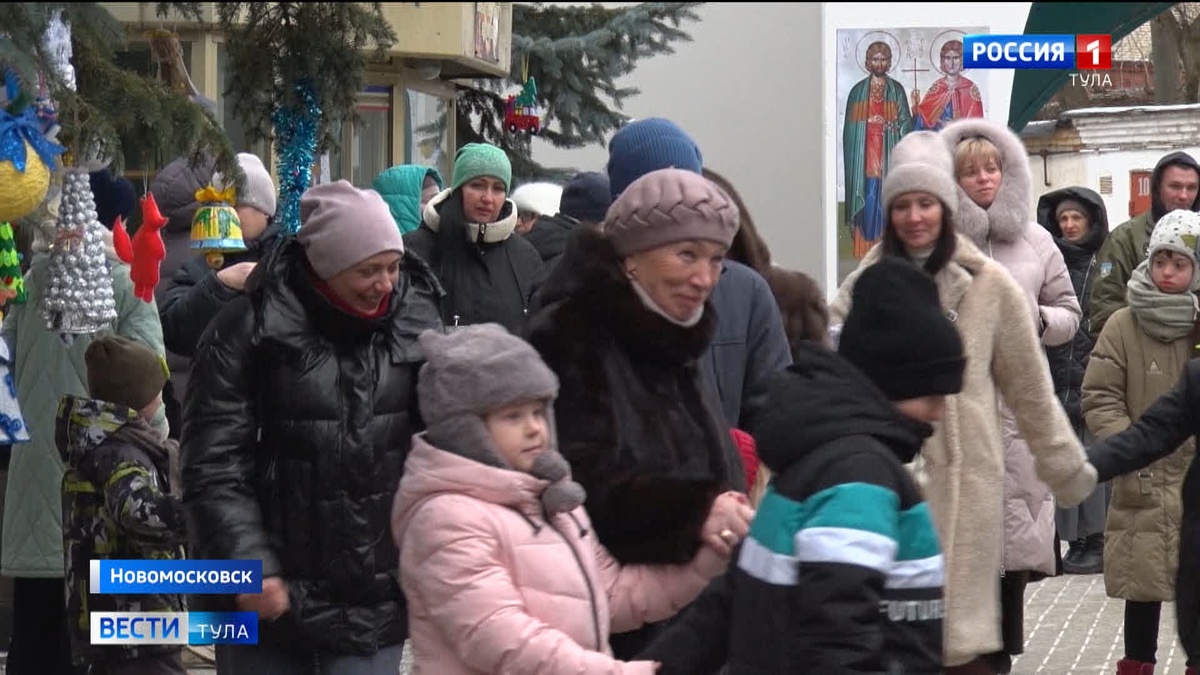 По завершении Божественной литургии подвели итоги конкурса елочных украшений, который неизменно собирает в стенах обители взрослых и детей, чтобы разделить радость Рождества Христова. Елена Булюкина, советник директора по воспитанию ГПОУ ТО «Донской политехнический колледж»: То, что сегодня нам недодала зима, немного тусклая в эти дни, с лихвой компенсируется тем многоцветием рождественских игрушек, что украсили наши монастырские елочки. В каждой поделке ощущается душевное тепло, а от этого на сердце становится радостно! Поздравить учащихся воскресных и общеобразовательных школ города, принимавших участие в многомесячном конкурсе, во время которого они своими руками, вместе со взрослыми, изготовили елочные игрушки, чтобы украсить и свои дома, и монастырские елочки к Рождеству, прибыл митрополит Тульский и Ефремовский Алексий и представители городской администрации Новомосковска. Алексий, митрополит Тульский и Ефремовский: И спасибо вам за то, что все дворы в нашем замечательном городе