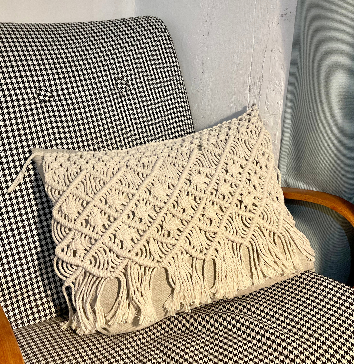 Теперь накидку из макраме вы можете пришить к декоративной подушке.