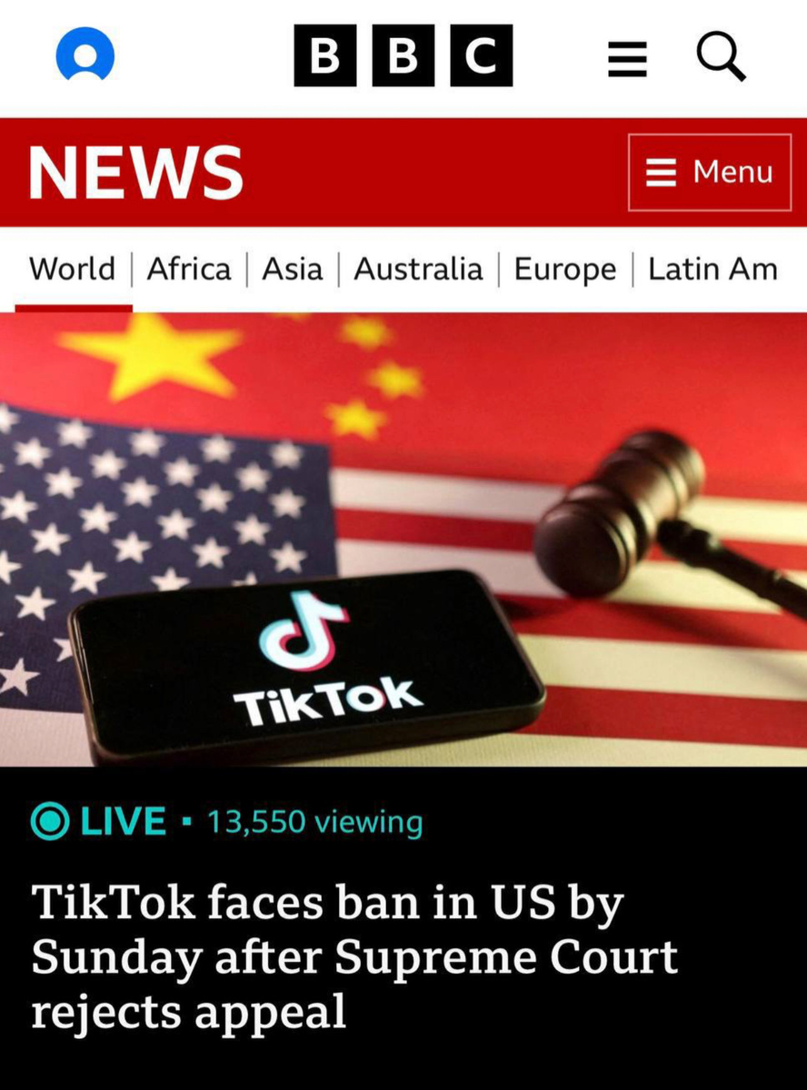 ТикТок заблокируют в США 19 января — Верховный суд поддержал законопроект по запрету платформы.