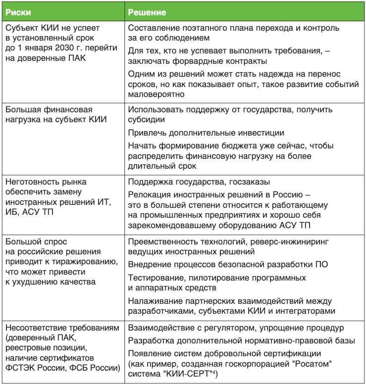 После вступления в силу ПП-1912 усложнился выбор программно-аппаратных комплексов для применения на значимых объектах КИИ, затруднился процесс обоснования применения решений, не входящих в единый реестр российской радиоэлектронной и не имеющих соответствующих сертификатов ФСТЭК России и (или) ФСБ России, – требуется доказательно показать отсутствие российских аналогов. В табл. 1 приведено общее видение проблематики выполнения требований ПП-1912 и путей их решения.