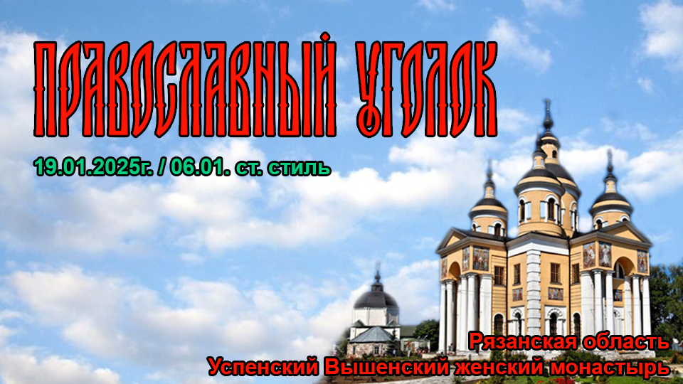 Святое Богоявление. Крещение Господа Бога и Спаса нашего Иисуса Христа. День памяти Святителя Феофа́на Затворника Вышенского, епископа Тамбовского. Георгий Васильевич Говоров, родился 10 января 1815 года в селе Чернава Орловской губернии в семье священника. В 1837 году окончил Орловскую Духовную Семинарию и поступил в Киевскую Духовную Академию. В 1841 году окончил Академию и принял монашество с именем Феофан. Затем преподавал в Санкт-Петербургской Духовной Академии. В 1847 году, в составе Русской Духовной Миссии был направлен в Иерусалим, где посетил святые места, древние монашеские обители, беседовал со старцами Святой Горы Афон, изучал писания отцов Церкви по древним рукописям. Там на Востоке, будущий святитель основательно изучил греческий и французский языки, ознакомился с еврейским и арабским. С началом Крымской войны члены Духовной Миссии были отозваны в Россию, и в 1855 году св. Феофан в сане архимандрита преподает в СПДА, затем становится ректором Олонецкой Духовной Семинарии