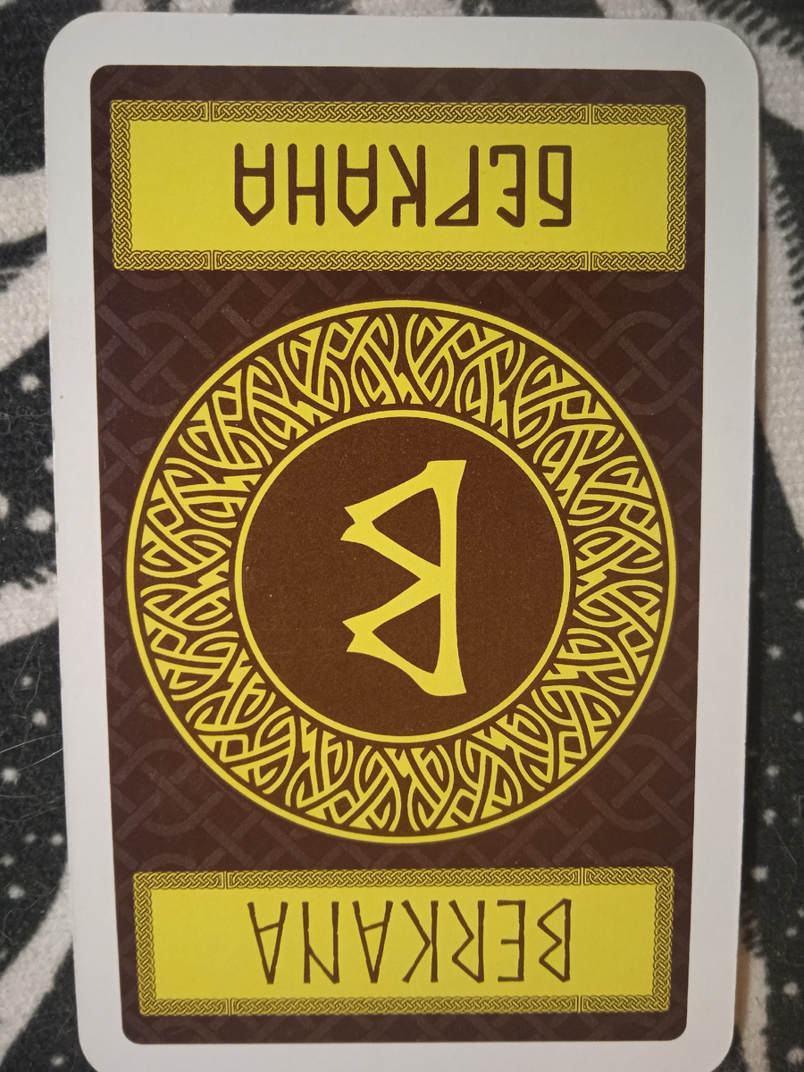 ⚜️Беркана в прямом положении символизирует рост, рождение нового и заботу, но в перевёрнутом состоянии она указывает на задержки, проблемы с завершением дел или ощущение, что энергия не находит выхода.