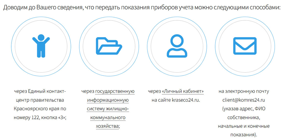 Все предыдущие попытки позвонить по указанным в квитанции телефонам ни к чему не привели. Или механический голос предлагал нажать цифру от единицы до трех в зависимости от моих запросов, либо на другом конце провода предлагали какой-то другой телефон. В результате общения с коллегами по этому наболевшему вопросу у меня в руках появился номер телефона, где отвечает представитель «Коммунальных ресурсов», живой человек, который готов записать информацию. Это было не очень просто, но все-таки я дозвонилась. Номер телефона 8 (3912) 28-62-70. Специалист компании подтвердила, что полученная мной квитанция в части показаний потребленной мной воды неправильная, записала мои показания и сказала, что внесет их в следующий платежный документ. Я вздохнула с облегчением. Всем своим знакомым, обеспокоенным тем же самым, что и я в последние два месяца, сообщила, что электронная почта client@komres24.ru – это действенный способ передачи показаний.