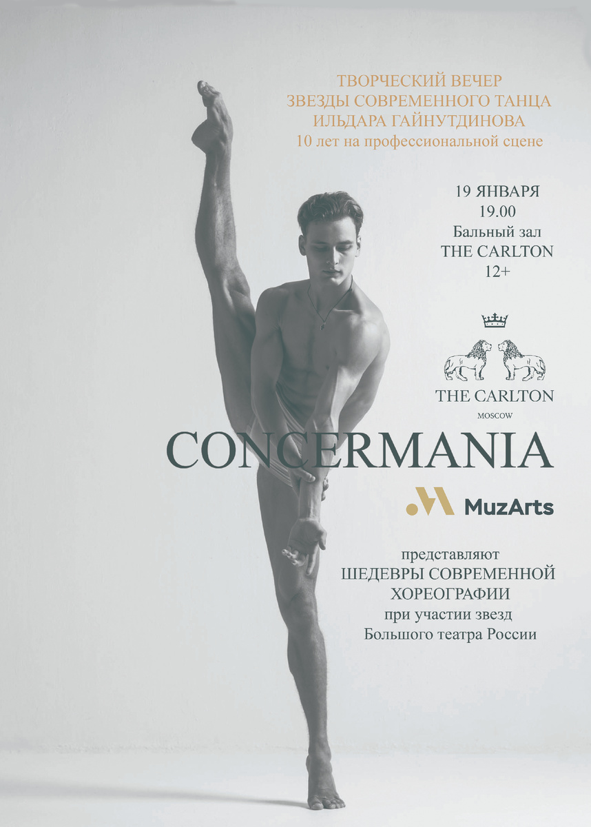#wld_афиша 19 января в THE CARLTON, MOSCOW состоится творческий вечер мировой звезды современного танца Ильдара Гайнутдинова, посвященный 10-летию его творческой деятельности на профессиональной сцене. Российский танцовщик и хореограф Ильдар Гайнутдинов, в свои 24 года выступающий на самых престижных сценах многих стран мира и покоривший миллионы зрителей, является приглашенным солистом в премьерской партии Воланда в спектакле «Мастер и Маргарита» Большого театра России, приглашенным солистом компании MuzArts, солистом Театра танца Аллы Духовой TODES, неоднократным победителем международных танцевальных конкурсов, удостоен множественных наград. Впервые, специально для этого вечера CONCERMANIA при поддержке продюсерской компании MuzArts и THE CARLTON, MOSCOW создадут профессиональную академическую сцену в Бальном зале для полного погружения зрителя в балетную сценографию и атмосферу музыкального театра. «Это первый творческий вечер в карьере необычайно талантливого артиста, который св