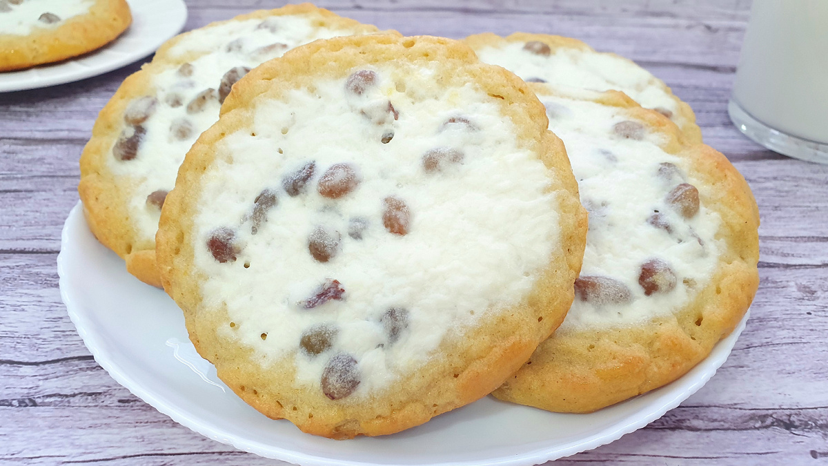 Начинка: изюм залить кипятком на 10 минут, затем слить воду и обсушить бумажным полотенцем. В миску поместить мягкий творог, белок, подсластитель, ванилин и крахмал. Перемешать до объединения ингредиентов. Добавить изюм, перемешать.