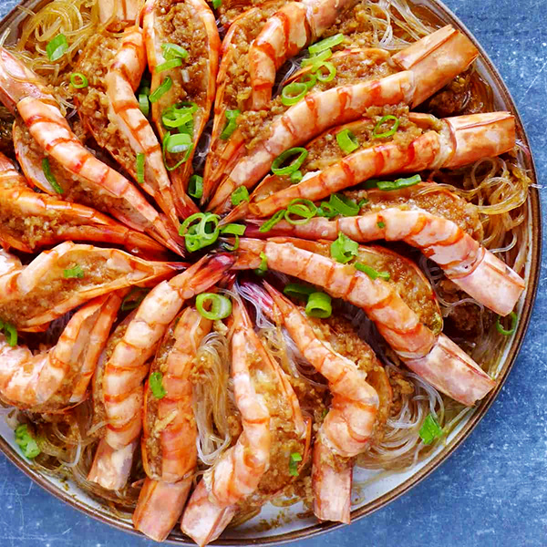 Когда дело касается китайской кухни, блюда на пару занимают особое место. Они не только сохраняют натуральный вкус ингредиентов, но и демонстрируют изящество минимализма. Сегодня делюсь рецептом, который часто готовят на праздники — креветки на пару с чесноком и фунчозой. Это кантонская классика: нежные креветки, приготовленные до идеальной текстуры, и фунчоза, впитавшая богатый чесночный соус. Готовится это великолепие всего за 20 минут, а выглядит и пахнет так, будто вы оказались в самом сердце китайского ресторана. Почему стоит попробовать? Во-первых, рецепт настолько прост, что его осилит даже новичок. Во-вторых, блюдо впечатляет и внешним видом, и насыщенным вкусом, а значит, оно идеально подойдет как для семейного ужина, так и для праздничного стола. 1. Подготовьте фунчозу Совет: не передержите фунчозу в воде, иначе она потеряет упругость. 2. Подготовка креветок 3. Готовим соус 4. Готовим креветки Совет: не переварите! Как только креветки станут розовыми и слегка свернутся, снима