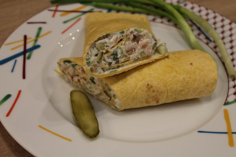 Тортилья с творожным сыром и куриной грудкой.