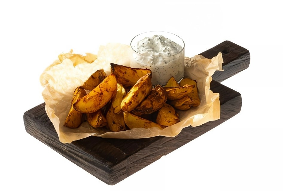 Классический рецепт, та самая картошка, которую так здорово уплетать за обе щеки в какой-нибудь придорожной точке с фастфудом. Готовить ее просто, главное, чтобы картошка вам попалась хорошая — свежая, крепкая, сочная. Ровно такой клубень сумеет на выходе образовать легкую, но очевидную корочку, сохранив внутри дольки нежную рассыпчатую мякоть. Контраста корочки и мякоти мало, нужен еще красивый набор специй из паприки, мускатного ореха, чили и чеснока, которыми традиционно припудривают картошку по-деревенски. Подавать классическую картошку по-деревенски стоит с классическим же соусом — миксом из сметаны, майонеза с добавлением чеснока и зелени. Ингредиенты Картофель 1 кг Растительное масло 30 мл Паприка 1 чайная ложка Куркума ½ чайные ложки Молотый сушеный чеснок ½ чайные ложки Мускатный орех по вкусу Молотый перец чили по вкусу Молотый черный перец по вкусу Сметана 150 г Майонез 50 г Чеснок 2 зубчика Петрушка 5 г Укроп 5 г Соль 1 чайная ложка 1.Картофель хорошо помыть и, не очищая,