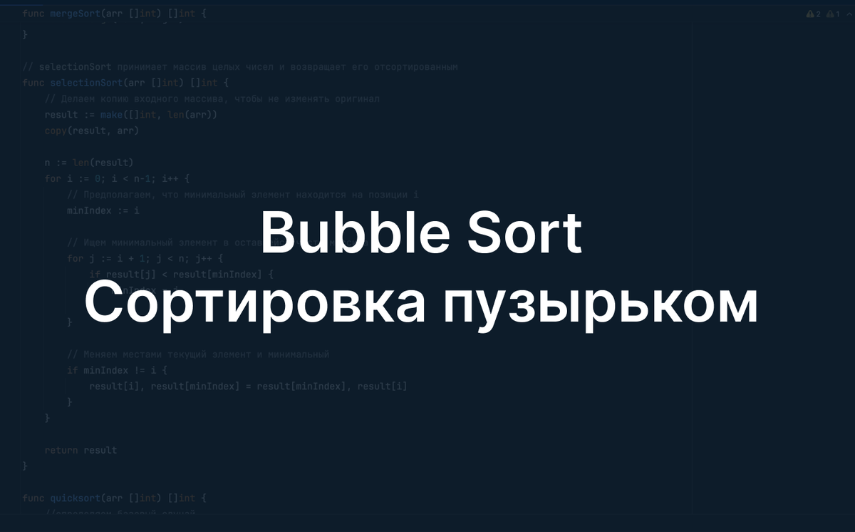 Сортировка пузырьком — это простой алгоритм сортировки, который последовательно сравнивает и меняет местами соседние элементы массива, если они расположены в неправильном порядке. Процесс повторяется до тех пор, пока весь массив не окажется отсортированным.