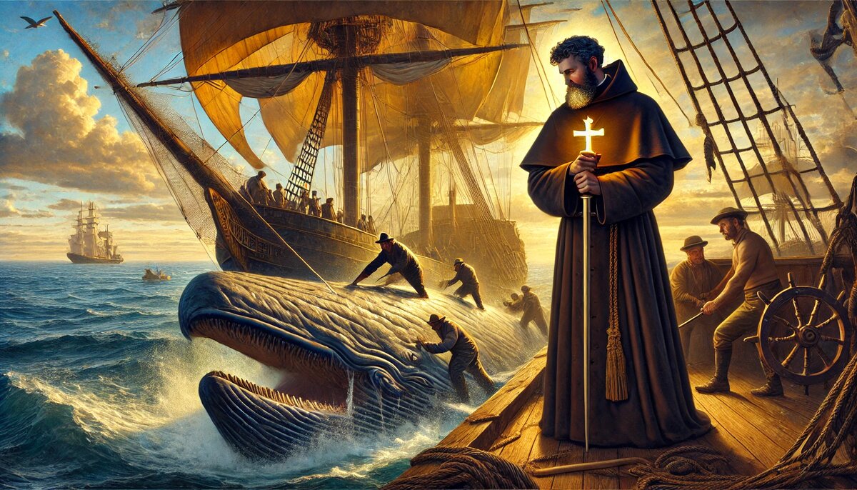 В конце главы глава 95 «Сутана» есть фраза: «Облаченный в благочестивые черные одежды, стоящий за кафедрой на виду у всех, не отрывающий взора от «листов Библии» — какой отличный кандидат в архиепископы, великолепный папа Римский вышел бы из этого резчика. В ранних изданиях «Моби Дик» фраза «Какой отличный кандидат в архиепископы» писалась как «what a candidate for an archbishoprick». Архаичное написание слова «archbishoprick» с буквой «k» уходит корнями в старые формы английского языка, где суффикс -rick означал «власть» или «властвование». Со временем слово стало писаться как archbishopric, утратив букву «k», но сохранив значение — «архиепископская кафедра» или «должность архиепископа». Мелвилл намеренно использовал архаичное написание с буквой «k» для создания двусмысленности. Слово archbishoprick, с добавленной «k», напоминает слово prick — вульгарное обозначение мужского полового органа в английском языке. Это вводит фаллический подтекст, что усиливает ироничный и комический эффе