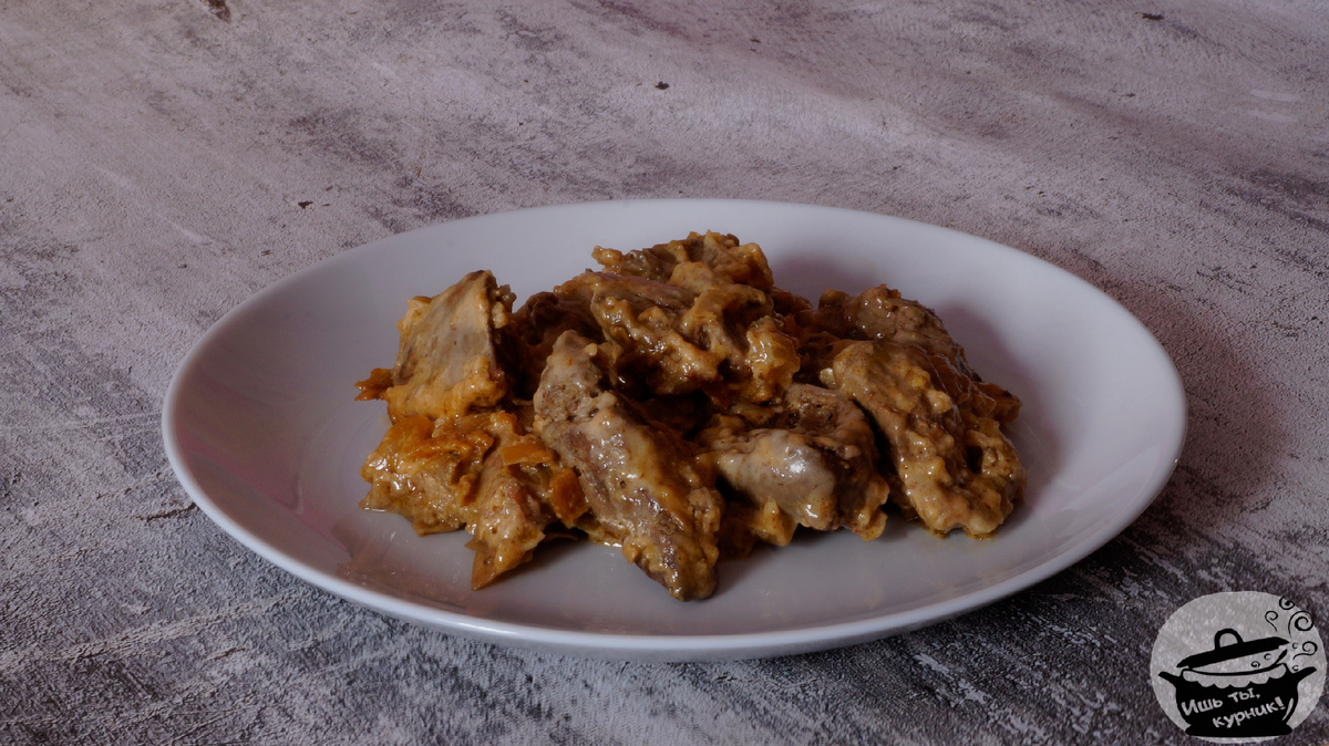 По рецепту "Кулинарии" 1955 г. Зачищенную печенку нарезать брусочками так же, как мясо для бефстроганова, посолить, обжарить на жире, посыпать подсушенной, как для соуса, пшеничной мукой, добавить шинкованный пассерованный репчатый лук, соус «Южный» или «Московский» острый, сметану, перемешать и прокипятить. Подать, посыпав зеленью петрушки или укропом, с картофелем, жаренным ломтиками (из вареного), или с картофельным пюре. Печенку можно приготовить также с томатом-пюре, который добавить (10 г) к печенке одновременно со сметаной. Печенка 140, маргарин животный 15, мука 5, лук 20, сметана 30, соус «Южный» 5, гарнир 150, зелень.