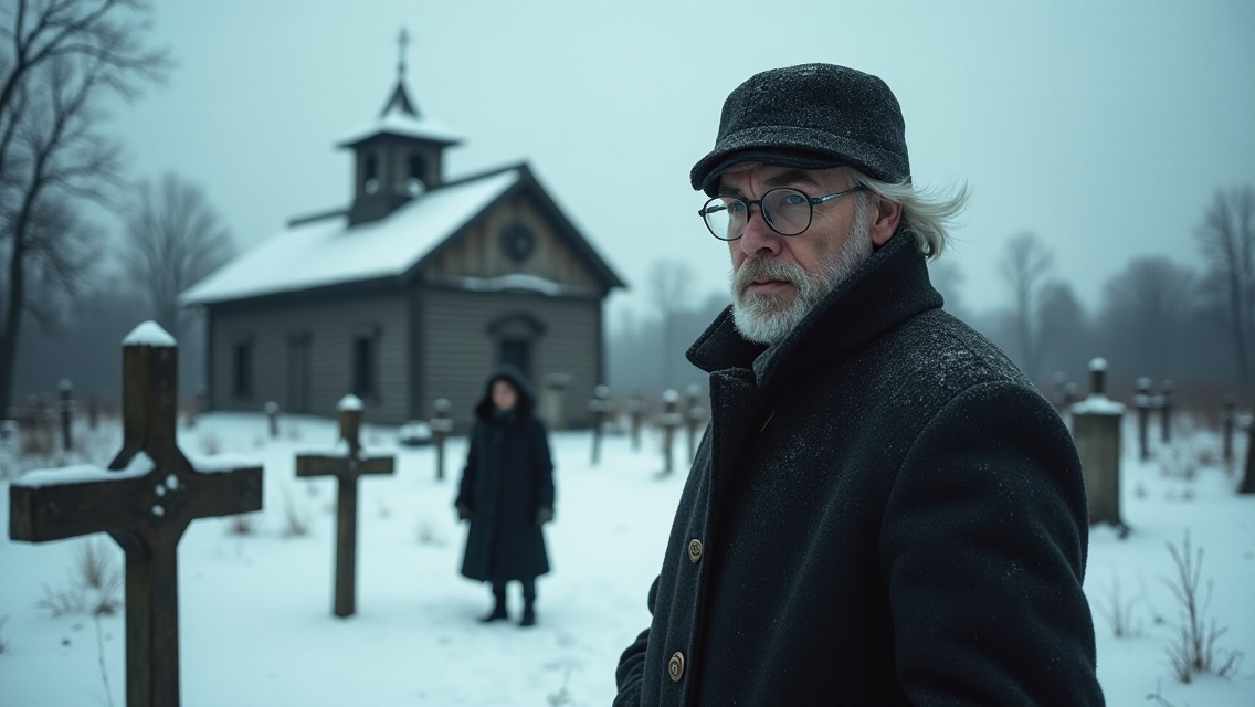 Морозный воздух обжигал лёгкие, когда Валерий Петрович Соколов переступил ржавую ограду старого сибирского кладбища. Февральское солнце, бледное и холодное, едва пробивалось сквозь тяжёлые облака, отбрасывая призрачные тени на покосившиеся кресты и замшелые надгробия.