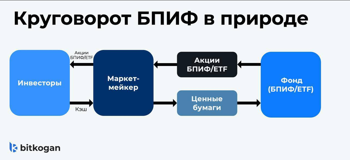 Фондовый рынок для каждого уникален. Для знающих людей — это Поле чудес, приумножающее деньги, для незнающих — скорее минное поле, где любой шаг оборачивается убытками и шокирующими потерями. ◽️Сегодня поговорим про самый популярный способ инвестиций — через покупку паев инвестиционного фонда (БПИФ/ETF). Что важно знать? Идем по пунктам. Какие бывают виды? Паевой инвестиционный фонд (биржевой ПИФ) и Exchange Traded Fund (ETF) — способы коллективных инвестиций. БПИФ = ETF с той лишь разницей, что первый узаконен в России, а второй торгуется за рубежом. По смыслу это одно и то же. Что внутри? При покупке ПИФа как на бирже (БПИФ), так и на внебирже, вы получаете состав активов фонда, который заключен в этом «кусочке» ценной бумаги, выпущенной управляющей компанией. Как деньги попадают в фонд? Классическая схема покупки ПИФа (внебиржевого формата): ➡️ вы заключаете договор с управляющей компанией ➡️ переводите деньги ➡️ УК покупает на эти деньги активы согласно стратегии ➡️ выдает вам паи