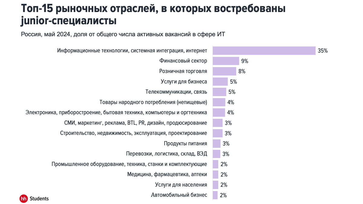Количество начинающих специалистов растет быстрее, чем создаются вакансии для их трудоустройства. Компании, которые раньше активно брали новичков на стажировки, теперь выбирают из десятков, а иногда и сотен резюме. Это приводит к увеличению конкуренции среди начинающих и росту требований.