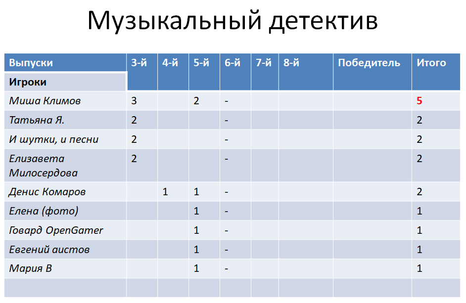 Пока такие результаты. У каждого читателя есть ещё шанс стать победителем нашей игры.