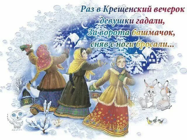 Вечер 18 января был особенным временем для незамужних. Девушки выходили за ворота и ждали первого встречного: если им оказывался молодой мужчина, то жди сватов. А ещё бросали сапог за ворота — куда укажет носок, оттуда и придёт суженый.