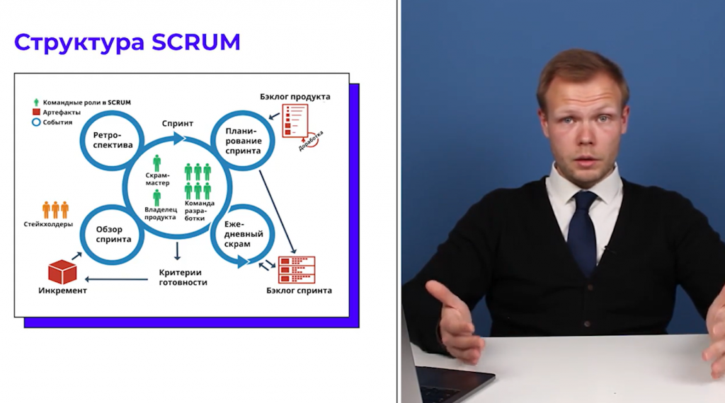 По методологии Scrum сложные процессы разбиваются на мелкие управляемые задачи. Такой подход помогает быстро адаптироваться к изменениям, получать обратную связь на каждом этапе работы и повышать эффективность команды.