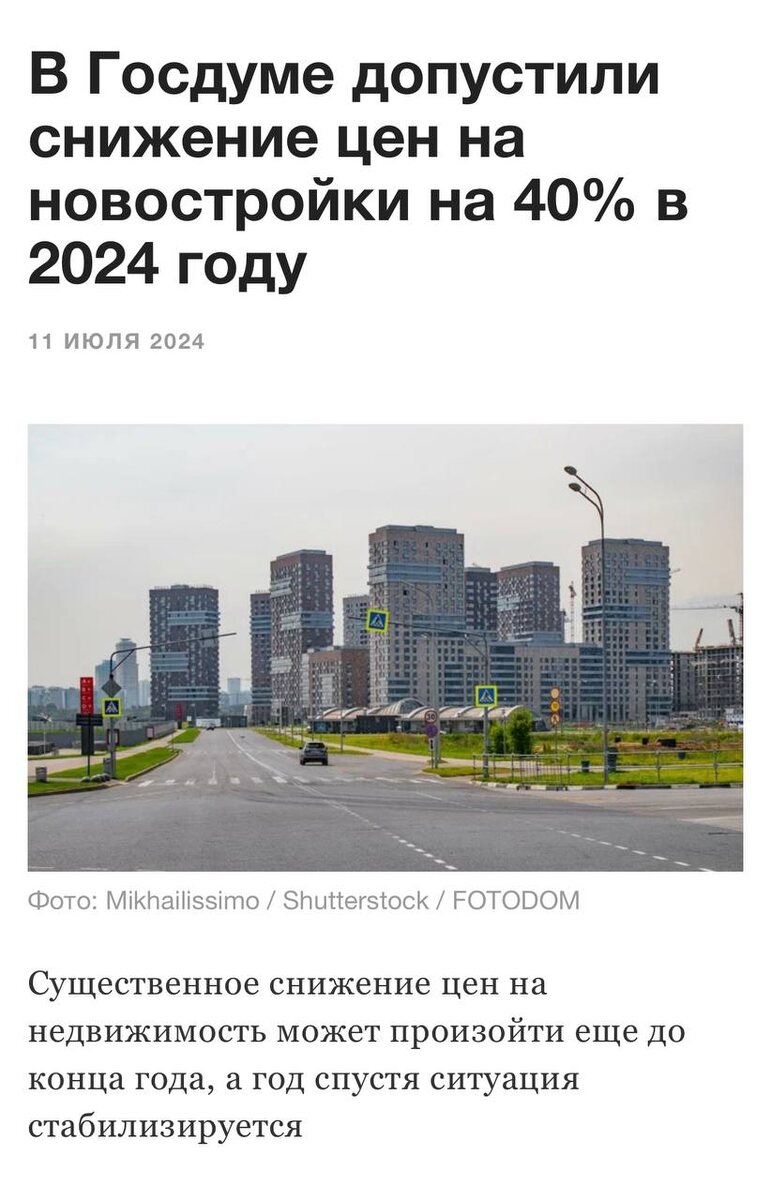 Люблю "экспертов" прогнозистов По мнению "эксперта" - кандидат экономических наук, профессор кафедры рекламы университета «Синергия» Сергей Зайнуллин, в прогнозе "Газете.Ru" . Стоимость однокомнатных квартир в Москве может упасть с 12 до 9-10 миллионов рублей, в Санкт-Петербурге — с 7,5 до 5,5 миллионов рубле. Причинами такого снижения он называет лопнувший пузырь на рынке недвижимости, так и кредитно-денежная политика ЦБ. P.S. Действительно хороший прогноз😁 Цены упадут на треть, на депозитах можно заработать до 20% годовых, то есть недвижимость купим со скидкой 50%. А эксперты из Госдумы, вообще рассчитывают на 40% скидки. В 2024 на 40% "упали", в 2025 ещё на 30%😂 Ё мое. Кто-то видел падение на 70%? В общем, падаем в цене каждый год, по прогнозам "экспертов" P.S.Когда я уже за даром смогу купить недвижимость? Что заставляет цены на жилую недвижимость расти и падать? Все басни непрекращающиеся годами о том, что цены должны упасть "в пол" - они на чем основаны? А на чем основаны суп