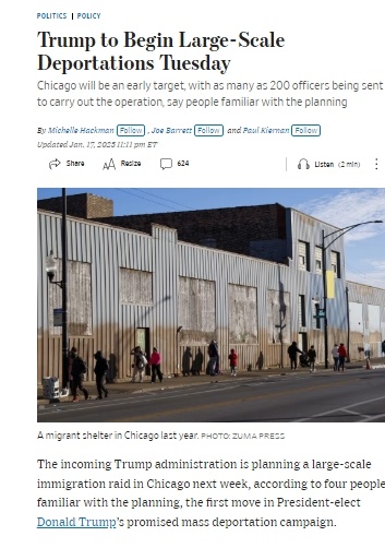 Wall Street Journal со ссылкой на источники, знакомые с планированием грядущей спецоперации пишет, что сразу после инаугурации Трампа в США начнутся масштабные рейды против мигрантов с последующими депортациями. По данным WSJ Первой целью станет Чикаго. Рейд начнется во вторник утром, на следующий день после инаугурации, и продлится всю неделю, пишет WSJ. Иммиграционная и таможенная полиция США направит от 100 до 200 сотрудников для проведения операции. Целью рейда станут нелегальные мигранты с криминальным прошлым, которые нарушили правила вождения и другие законы, не слишком серьезные для преследования, по мнению предыдущей администрации Джо Байдена, пишет WSJ. Собеседники издания рассказали, что если полицейские при арестах преступников заметят других мигрантов, находящихся в стране незаконно, их тоже задержат. По данным издания, Том Хоман, новый «царь границ» в администрации Трампа, знал о планировании операции еще в прошлом месяце. Соратники Трампа остановились на Чикаго в связи с
