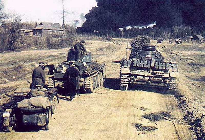 Пехотный полк, куда прибыл Ландсберг, атаковал небольшую деревню, расположенную вдоль дороги, которая шла через дремучие леса. Возьми её и вперёд, что казалось бы проще. Командир полка обрисовал ему обстановку, когда они были на КП. Против его хорошо вооружённого и прошедшего две европейские страны полка со стороны советов стоял только пехотный батальон, две роты курсантов и взвод связистов. Подполковник рассказывал ему обо всём спокойно, потому что был на фронте с первых дней и знал противника. Ландсберг же принял этот спокойный тон за некую рисовку: мол смотрите, дорогой гость, как мы сейчас разделаемся с этими русскими. Для Бруно, как опытного военного, соотношение сил и преимущества немецкого полка были очевидны. Как говорится, все ставки на немцев. Тут над ними прошли «Мессеры», которые быстро отработали по позициям красноармейцев, подняв фонтаны взрывов и прошив местность строчками пулемётных трасс. Затем по окопам прошлись огнём миномётчики. Создалось такое впечатление, что горит и дымит не край с их стороны, а вся русская деревушка.