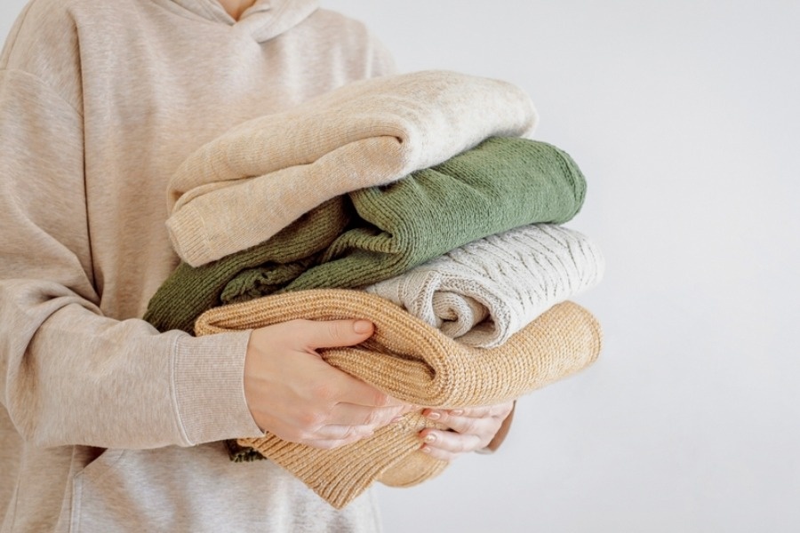 Лучший способ хранения свитеров — держать их сложенными в закрытом ящике или контейнере. Складывание предотвращает растяжение волокон, а закрытое хранение защищает от пыли и моли. Используйте прозрачные контейнеры, чтобы лучше ориентироваться и быстрее находить нужную вещь. Необычные приемы, как сделать колючий свитер мягким (и не повредить его структуру) Если у вас недостаточно ящиков для всех свитеров, их можно повесить, но важно правильно сложить, чтобы предотвратить растяжение. Свитера следует хранить только почищенными и высушенными, чтобы предотвратить образование плесени и не привлечь насекомых. Обязательно достаньте свитер из пластикового пакета после химчистки, чтобы избежать обесцвечивания. Храните свитера в пластиковых контейнерах в прохладном, сухом месте, добавив пакетики кедровой стружки или лаванды для отпугивания насекомых. Избегайте мешков для хранения на открытом воздухе и хлопчатобумажных сумок для шерстяных и кашемировых свитеров, чтобы насекомые не повредили хлопок