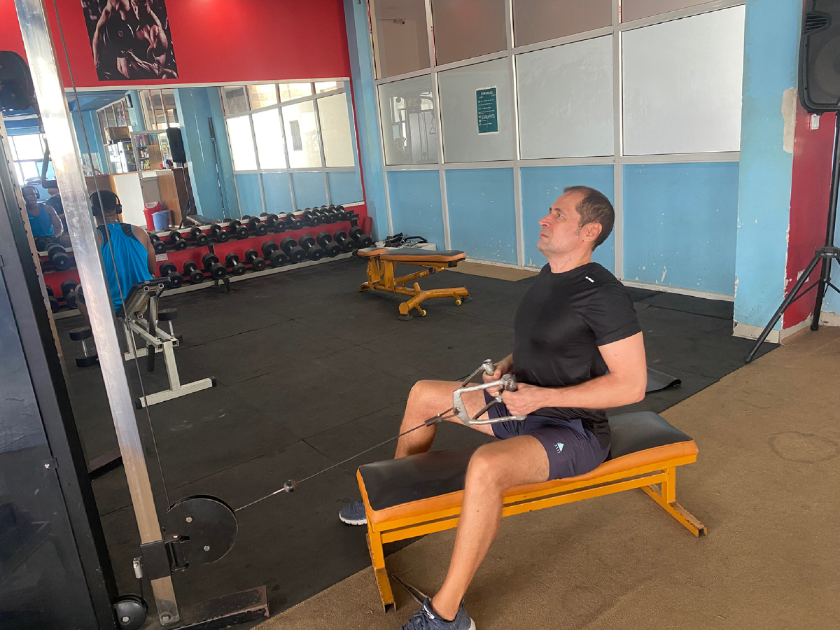Табата в разминке вынесла Андрею существенную долю сил. Ему нужно поднять выносливость, а этот комплекс упражнений как раз позволяет улучшить общую выносливость организма. Разминка длилась 4 минуты. 20 секунд приседаешь, 10 секунд на отдых и опять. Таких 8 повторений по таймеру. После были жимы на тренажерах, думаю, уже к вечеру его ноги превратятся в деревянные ходули, которые будут болеть пару дней. Но вскоре эта боль превратится в силу.