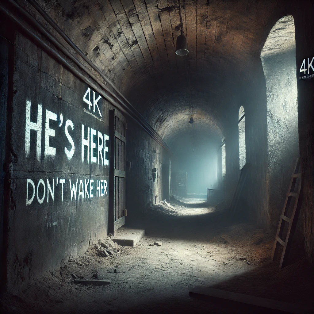 Когда дверь наконец поддалась, я почувствовал, как холодный воздух ударил в лицо. Позади тишина лагеря казалась почти успокаивающей, но внутри шестой комнаты что-то меняло всё. Свет фонаря выхватил из тени лестницу, ведущую вниз. Неужели это вход в тот самый бункер, о котором ходили легенды? Каждый шаг по холодным, металлическим ступеням отдавался эхом, будто лагерь сам наблюдал за мной. В воздухе стоял запах сырости, пыли и чего-то странного, едва уловимого. Фонарь то и дело мигал, как будто пытался предупредить: «Не иди дальше». Но я уже не мог остановиться. Внизу меня встретил узкий коридор с облупившимися стенами. На них тёмными мазками кто-то написал слова, от которых мурашки побежали по коже: *«Он здесь»* и *«Не разбуди её»*. Стены, казалось, сжимались, а шёпот усиливался. Теперь я слышал его отчетливо: это были не мои шаги. Кто-то другой был рядом. Я прошёл дальше и увидел первую комнату. В ней был старый письменный стол, покрытый пылью и рассыпающимися бумагами. Среди них я на