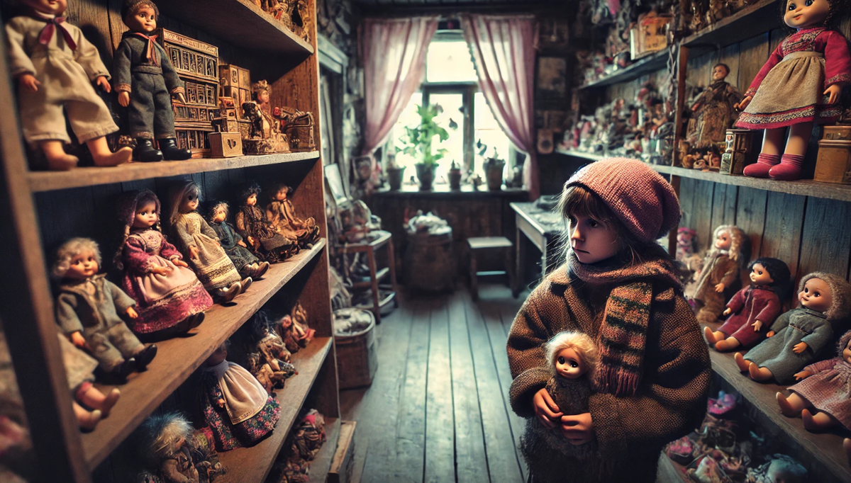 Купив хлеб, Сергей задумчиво остановился у витрины с игрушками. Кукла, которую он видел в руках девочки, привлекала взгляд своей простотой: синее платьице с белыми кружевами, длинные каштановые волосы, аккуратно заплетённые в косу. Она выглядела такой домашней, будто ждала, чтобы её забрали и прижали к себе. Сергей достал её с полки, несколько секунд изучал, а затем уверенно направился к кассе.