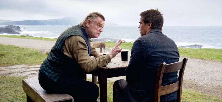 Вся жизнь двух друзей основана на ежедневном походе в паб за пинтой пива и общении. Добродушный зануда и очень простой во всех смыслах Падраик, актёр ирландец Колин Фаррелл, пиво пьёт по-ирландски, что на верхней губе остаётся пена. А на голову более культурный, потому что играет на скрипке, его собутыльник Колм – актёр, рыжий ирландец Брендон Клиссон.