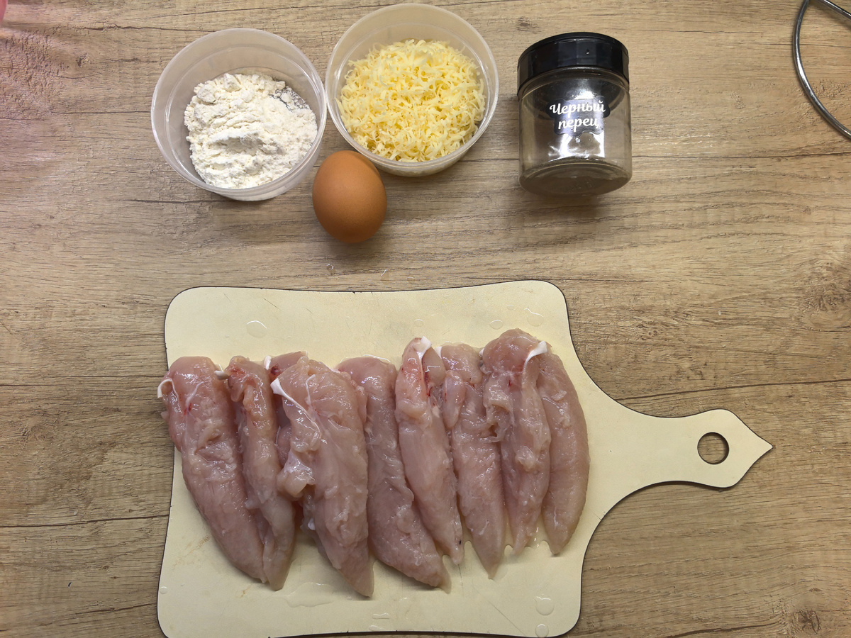 Мелко нарежьте куриное филе кубиками. Мелко нарежьте лук. Сыр натрите на мелкой терке. Сложите все продукты в миску и перемешайте.
