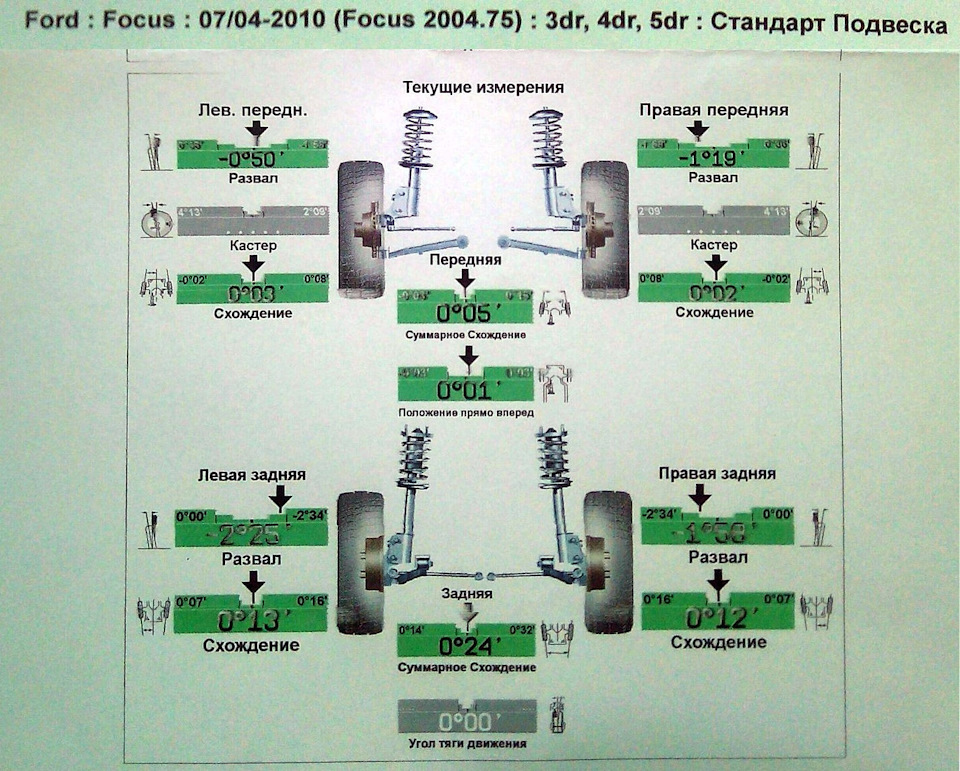 В этой статье мы рассмотрим процесс регулировки развала-схождения колёс на автомобиле Ford Focus первого поколения. Мы подробно опишем, как правильно выполнить эту процедуру, какие инструменты и материалы понадобятся, а также какие проблемы могут возникнуть при неправильной регулировке. Развал-схождение — это процесс регулировки углов установки колёс автомобиля. Он необходим для обеспечения правильного положения колёс относительно друг друга и дороги. Неправильная регулировка может привести к ухудшению управляемости, увеличению износа шин и другим проблемам. Регулировка развала-схождения необходима в следующих случаях: Для регулировки развала-схождения вам понадобятся следующие инструменты и материалы: Процесс регулировки развала-схождения состоит из нескольких этапов: После регулировки проверьте результаты. Проедьте на автомобиле несколько километров и оцените управляемость. Проверьте износ шин. При неправильной регулировке развала-схождения могут возникнуть следующие проблемы: Следу