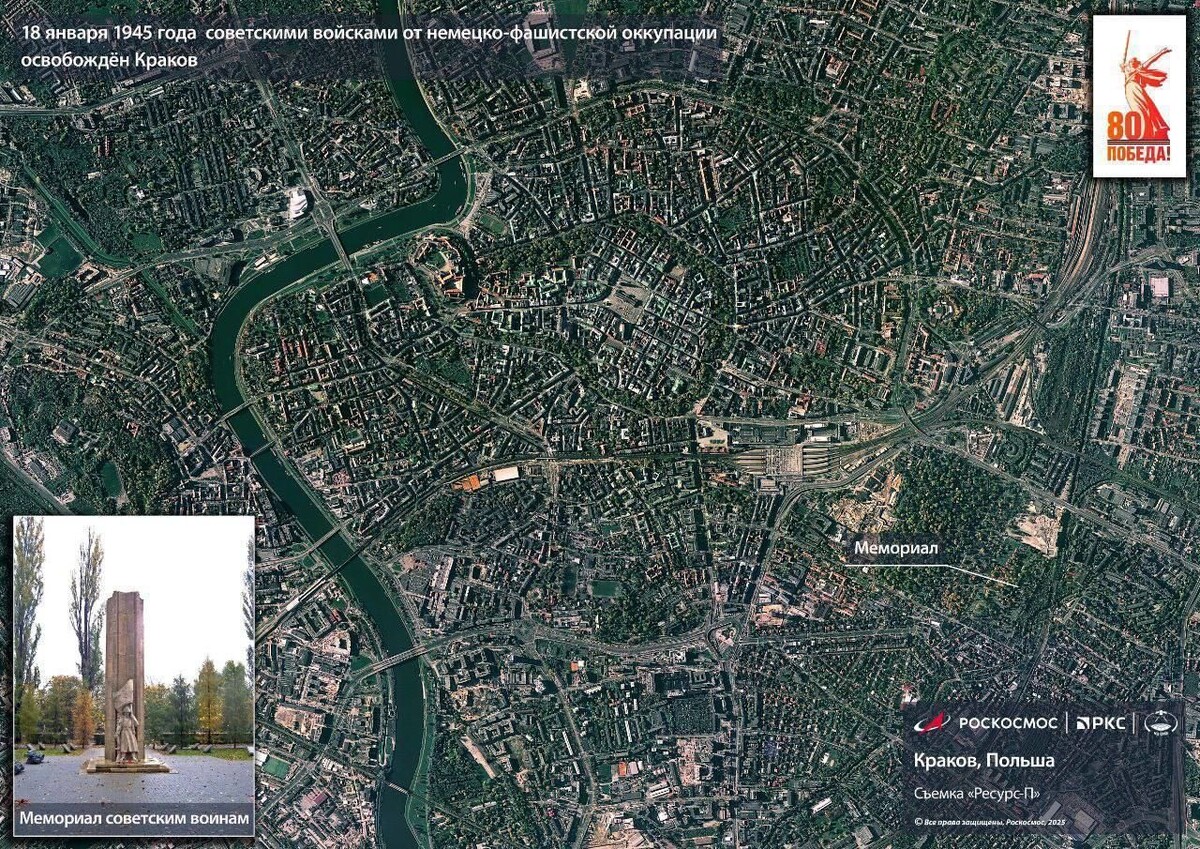 Госкорпорация «Роскосмос» начинает публикацию космических снимков, посвященных 80-й годовщине Победы в Великой Отечественной войне. Спутник «Ресурс-П» запечатлел польский Краков. 18 января 1945 года город был освобождён советскими войсками от немецко-фашистской оккупации. Ранее власти Петербурга поздравили горожан с Днем прорыва блокады Ленинграда. Город отмечает 82-ю годовщину памятного события.